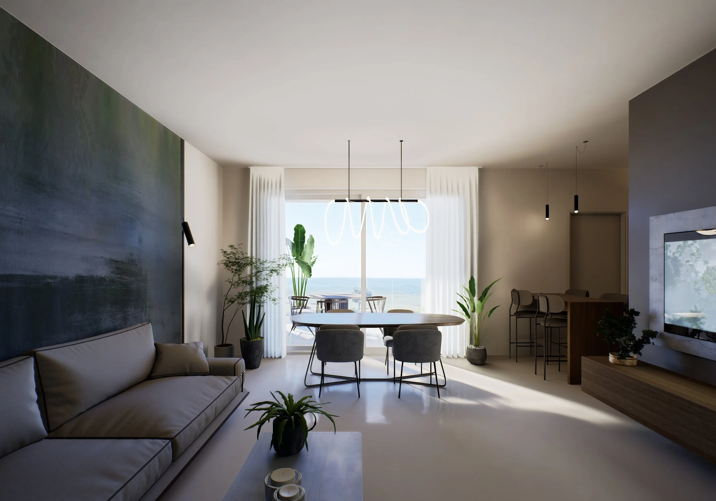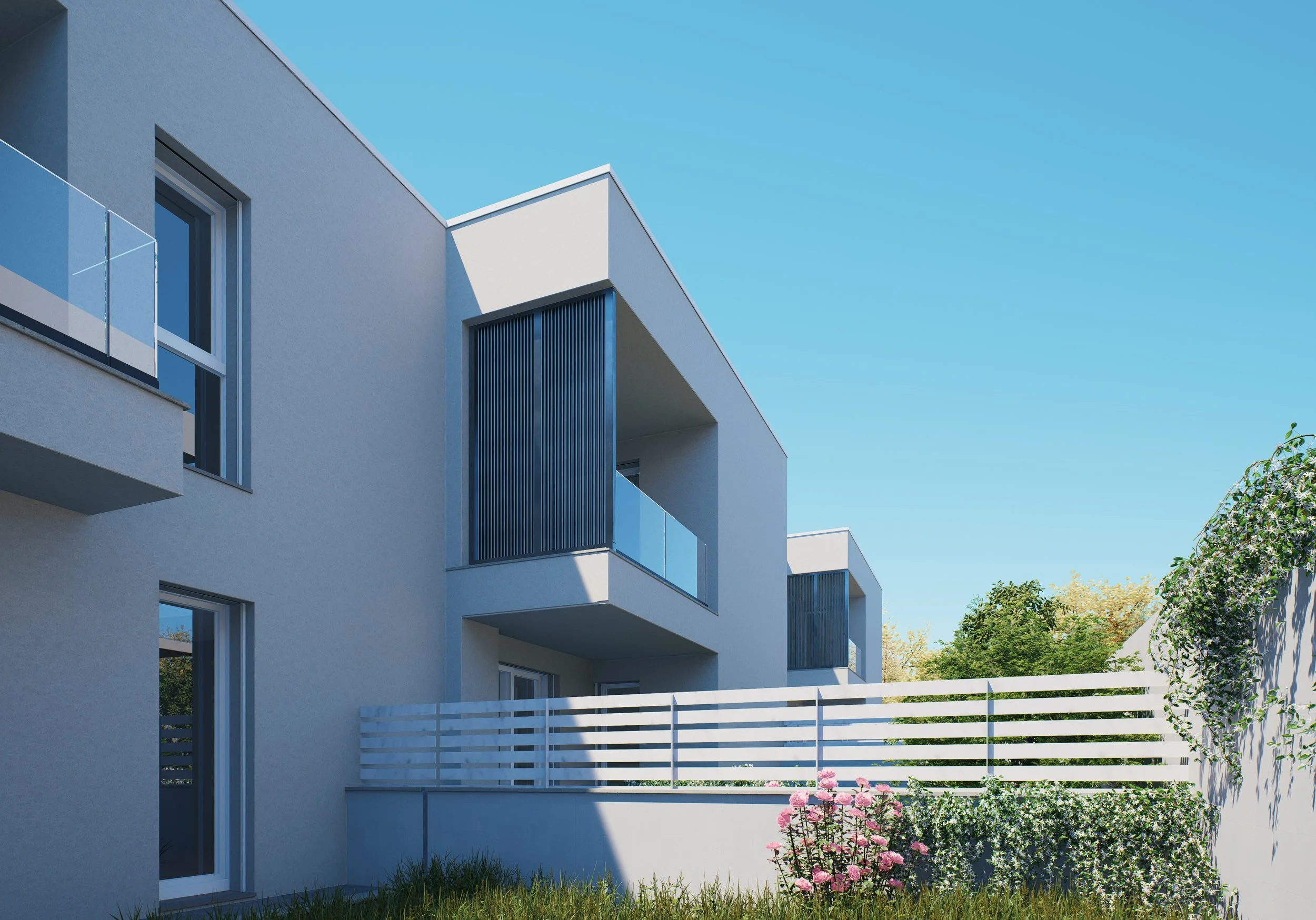 Il progetto architettonico enfatizza il dialogo con il paesaggio circostante: ampie vetrate e terrazze panoramiche permettono di godere pienamente della vista sulla valle, fondendo gli spazi interni con l’ambiente esterno. Gli spazi verdi privati e le schermature architettoniche valorizzano ulteriormente il legame tra le abitazioni e il territorio, garantendo al contempo privacy e comfort.